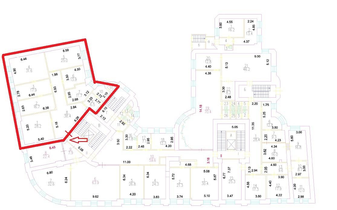 Планировка: семь кабинетов, зона рецепшен, сан узел и серверная. Можно оборудовать кухню с мокрой точкой..
