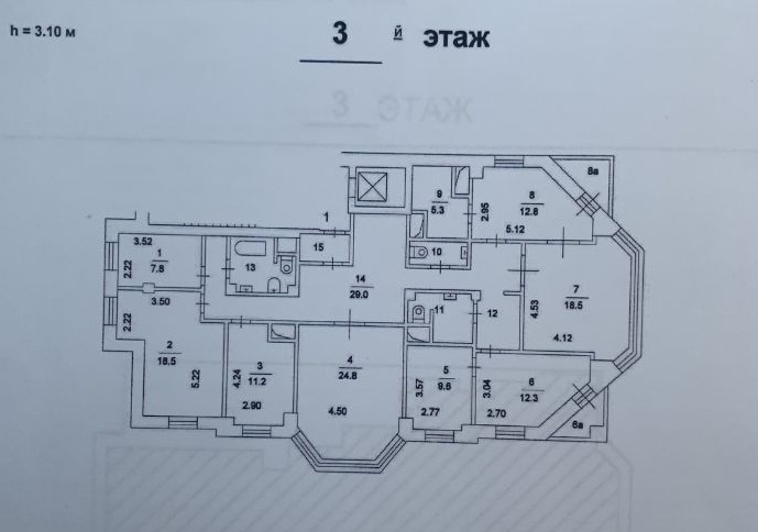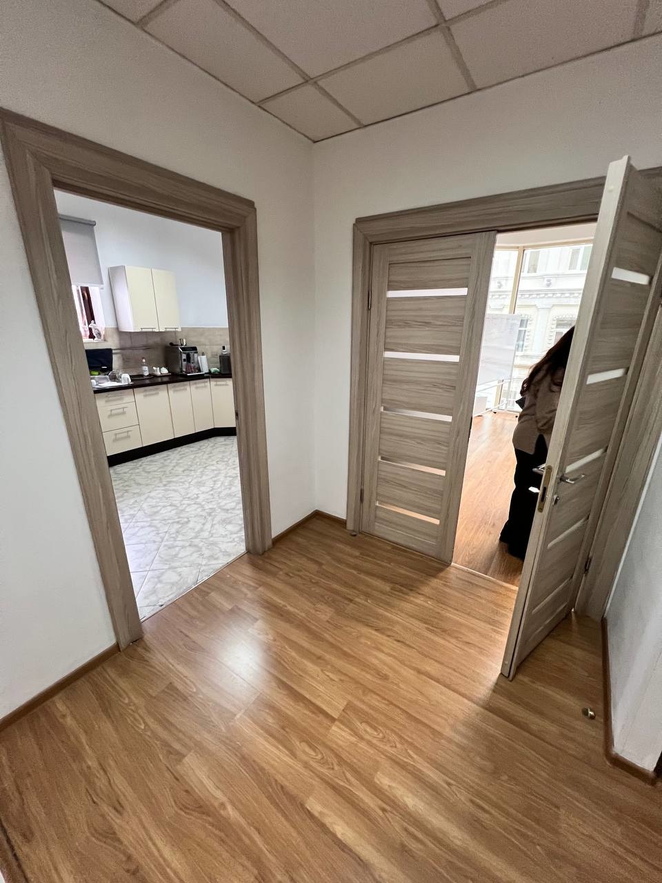 Планировка: семь кабинетов, коридор, кухня, два с/у.