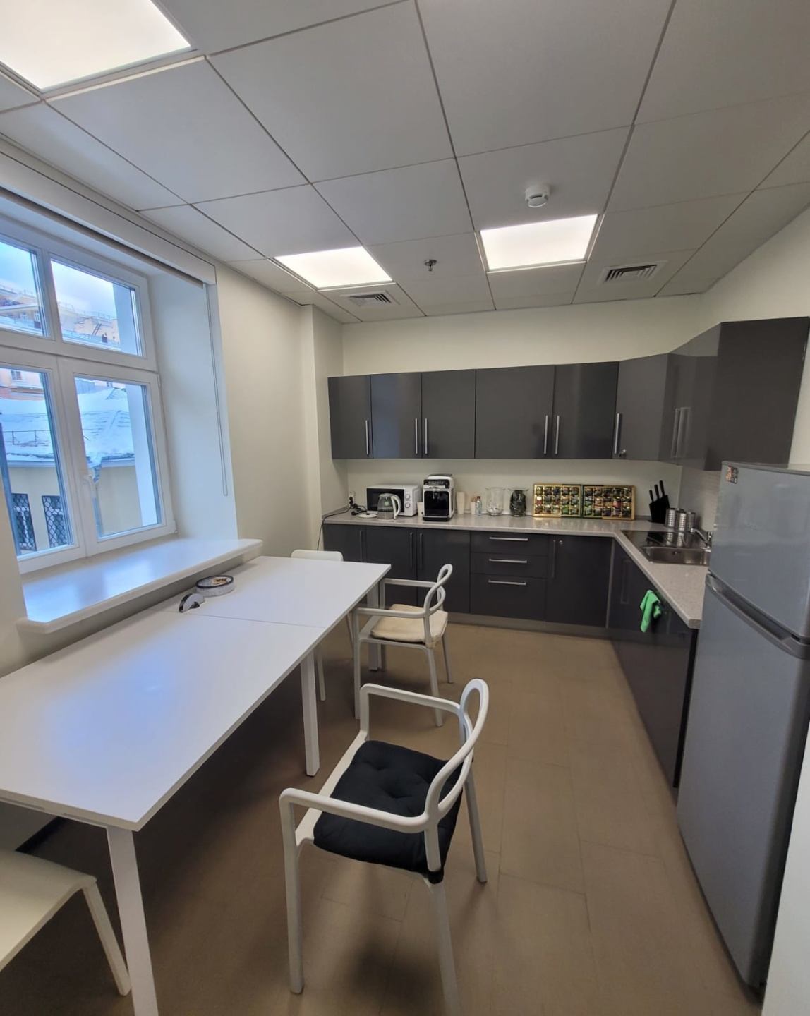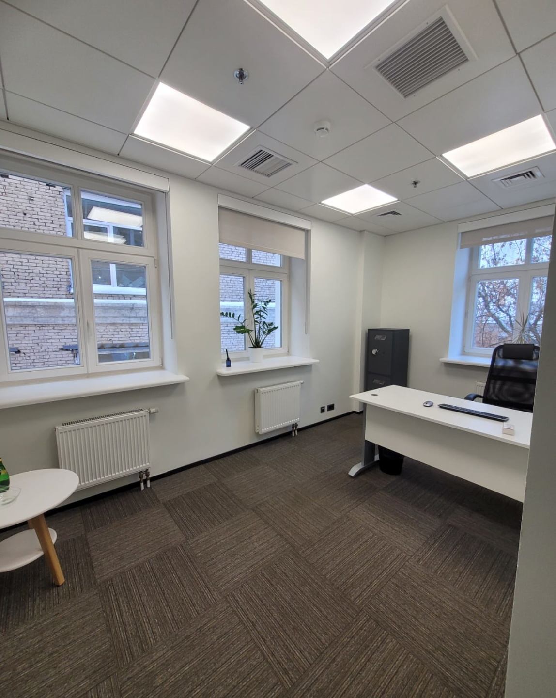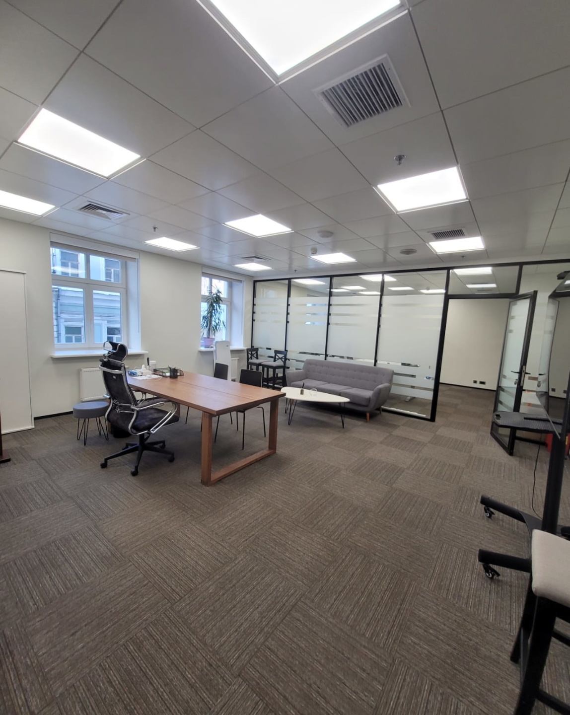 Смешанная планировка: опен спейс, изолированные кабинеты, ресепшен, серверная, мини-кухня, сан узлы.