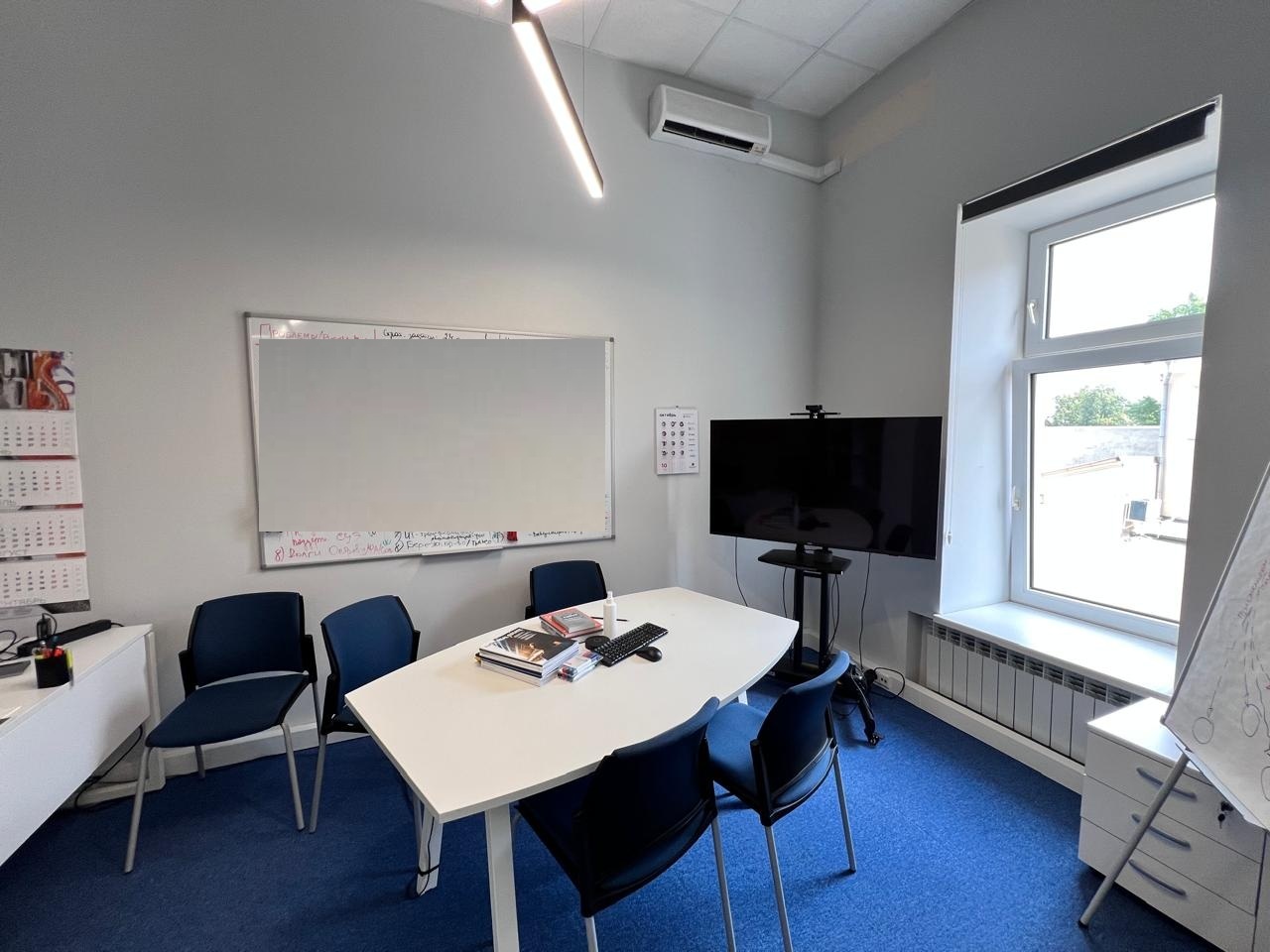 В здании есть кафе, конференц-зал, центральная рецепция.