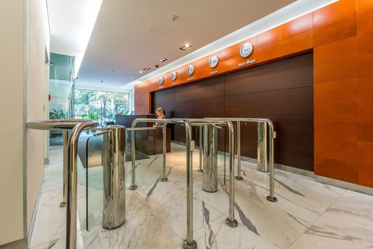 Бизнес-центр обслуживается четырьмя лифтами фирмы «ThyssenKrupp Elevator»