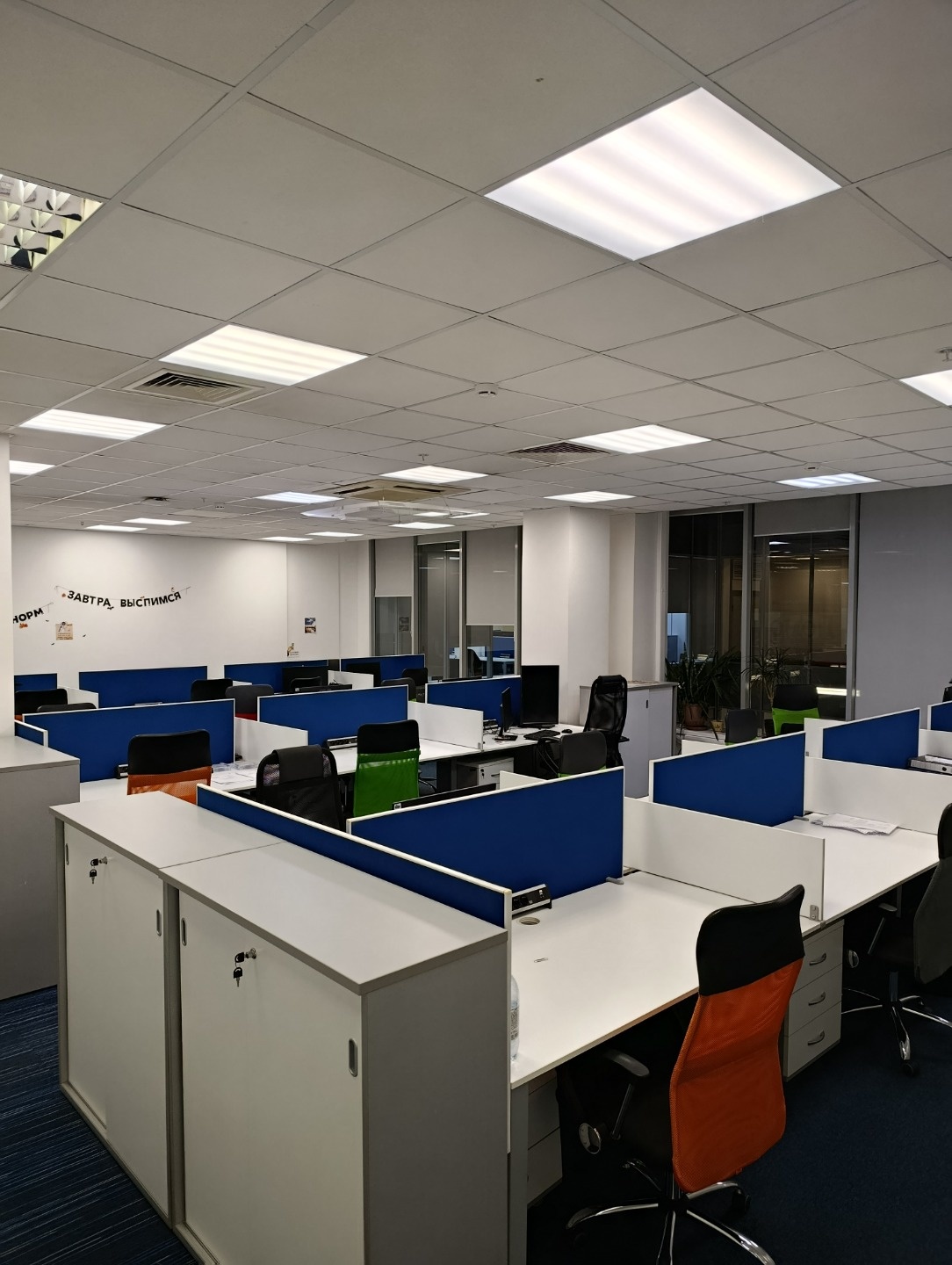 Планировка смешанная: опен спейс, переговорные, зона ресепшен, кухня.