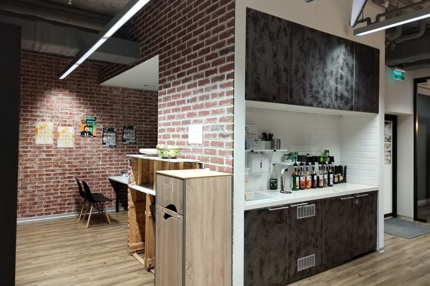 Смешанная планировка: два отдельных кабинета, open space, помещение под кухню.