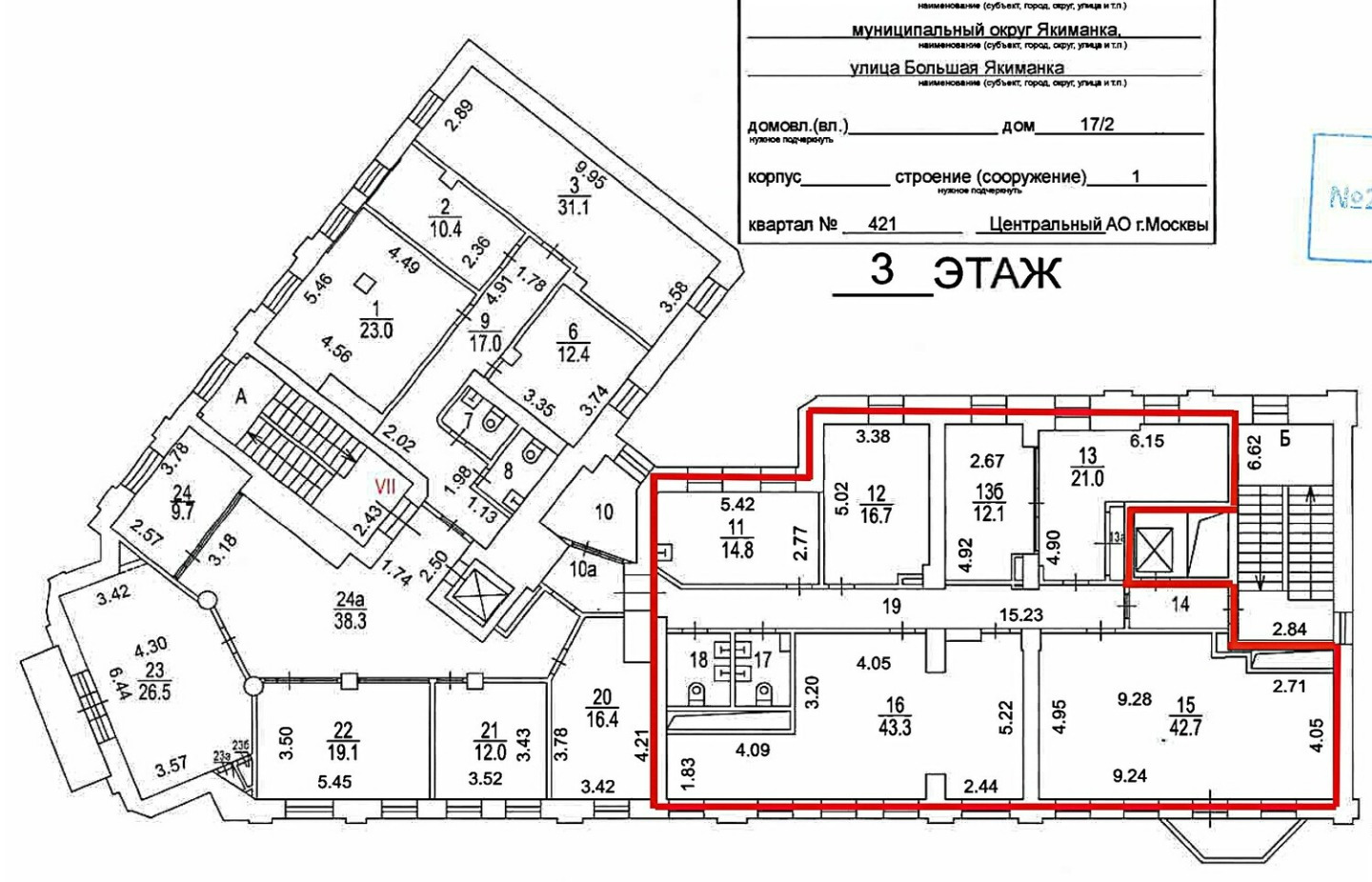 Офис на третьем этаже общей площадью 467,8 кв.м.